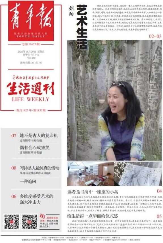 劉陽是編輯家和書法家,她感覺一生與這兩件事相關(guān),自己是幸福上疊加幸福的人。但是劉陽熱愛著的,遠(yuǎn)遠(yuǎn)不止文學(xué)藝術(shù)這兩樣,她喜歡跳舞、唱歌、喝茶、喝酒,即使面對油鹽醬醋,她也能深深地陶醉其中,比如她能炒一手好菜,別人叫她劉小面、劉泡菜,有記者采訪她的時候,她正在廚房里跳鍋邊舞。人家叫她劉主編,她說下班在家該叫她劉主婦。在劉陽的身上,我們已經(jīng)很難把生活與藝術(shù)剝離開來,她自己也在極度享受著生活在藝術(shù)中、藝術(shù)在生活中的極度混淆感。劉陽說,她對想當(dāng)什么家沒有強烈欲望,她最想的還是當(dāng)好女人家,“當(dāng)然,從職業(yè)的角度,我更希望成為編輯家”。