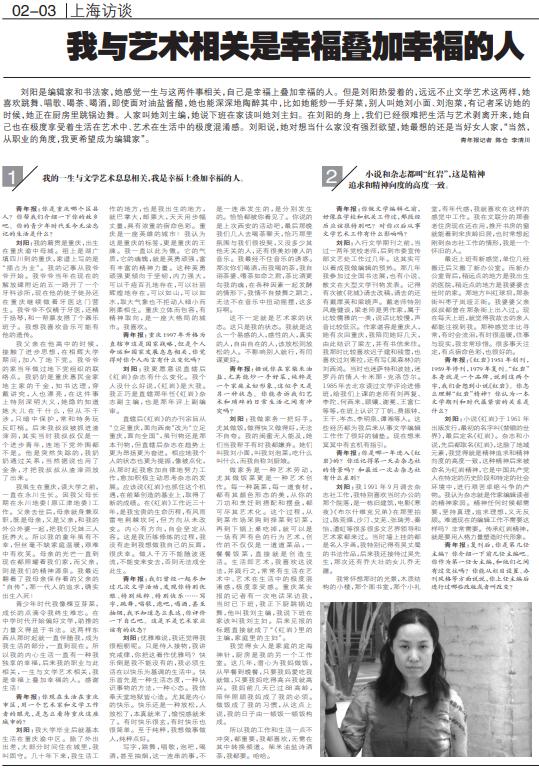 原標(biāo)題:《上海訪談 | 劉陽:我是幸福上疊加幸福的人,不能隨波逐流否則無法成全此生》