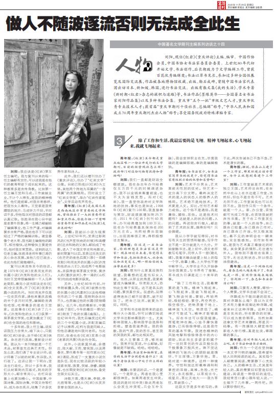 劉陽:我更愿意說直轄后《紅巖》雜志有什么變化。我個人沒什么好說,《紅巖》是大我。我正巧是直轄那年任《紅巖》雜志副主編,也是那年評上副編審。