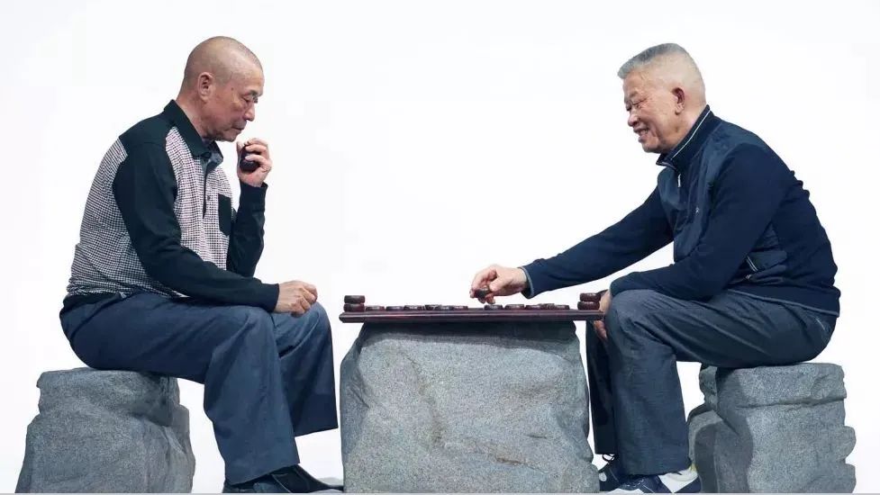 一天看到父親和公公在陽臺下棋