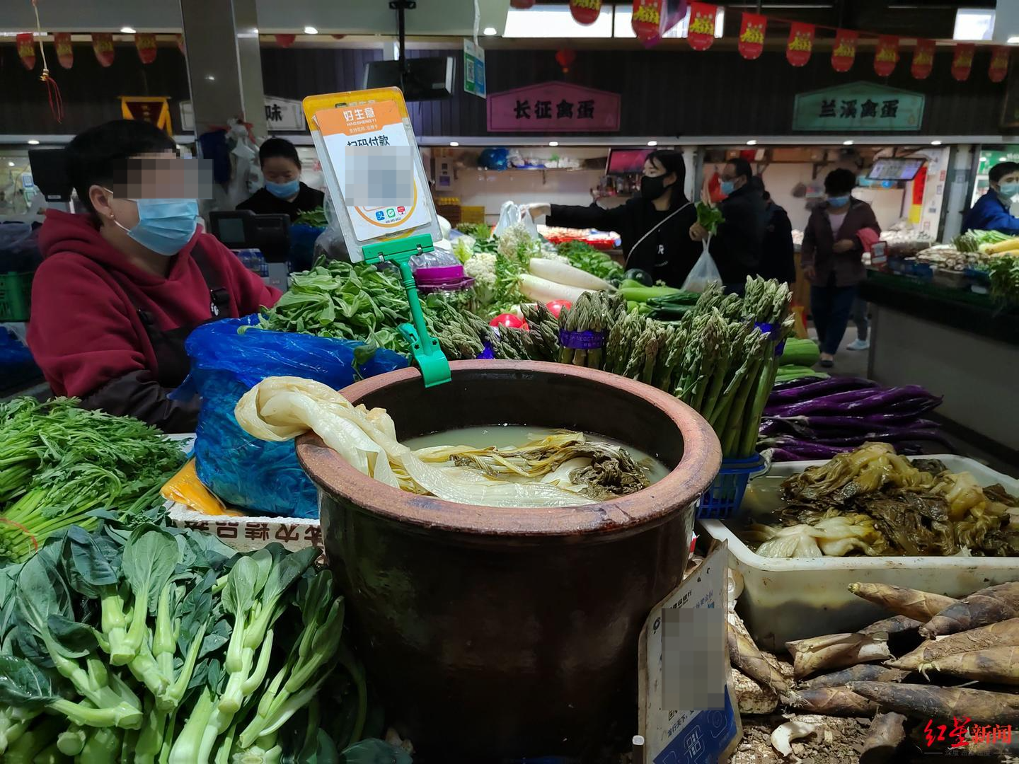 杭州采荷農(nóng)貿(mào)市場(chǎng)銷售的冬腌菜。 本文圖片 紅星新聞