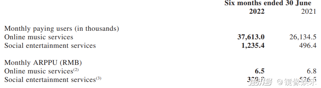 根據(jù)2022年中期財(cái)報(bào)顯示,截至6月30日,網(wǎng)易云音樂社交娛樂服務(wù)月付費(fèi)用戶數(shù)為123.5萬,同比增幅達(dá)149%。社交娛樂服務(wù)模塊每月每付費(fèi)用戶收入從526.5元跌至329.8元。