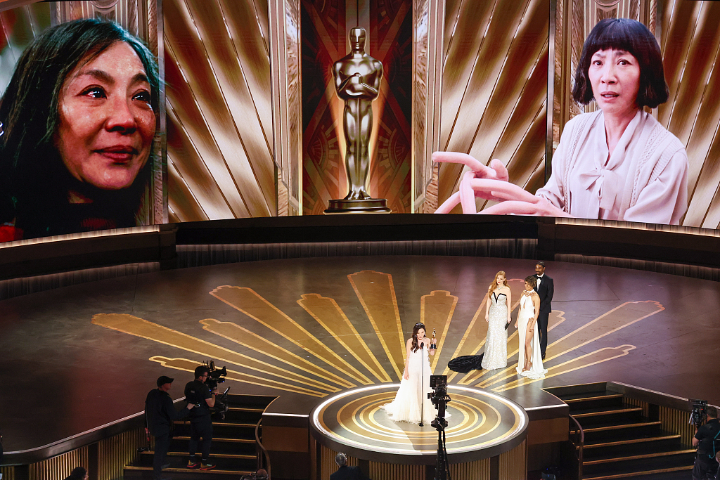 當(dāng)?shù)貢r(shí)間2023年3月12日,美國加州,楊紫瓊憑《瞬息全宇宙》獲第95屆奧斯卡最佳女主角獎(jiǎng),成史上首位華裔奧斯卡影后。視覺中國 圖