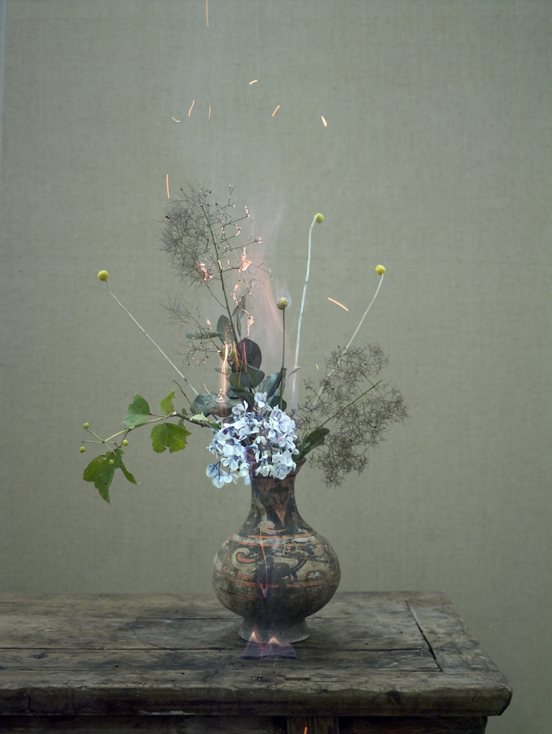 2010年,藝術(shù)家蔣志的妻子因病去世,蔣志悲痛欲絕。妻子愛(ài)花,兩人相伴十一年,他一想到妻子就會(huì)點(diǎn)燃一支花,思念轉(zhuǎn)化成一次次的燃燒,他把花與火交匯的瞬間拍下來(lái),就這樣一直持續(xù)了整整四年,他把這些作品取名為《情書(shū)》。
