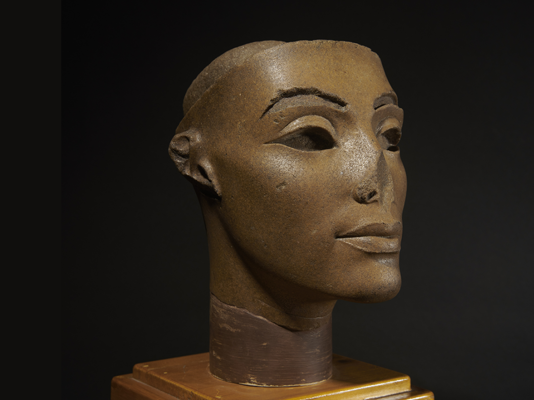納芙蒂蒂像頭部,石英巖,18王朝(公元前1550-1295年),埃及國家博物館