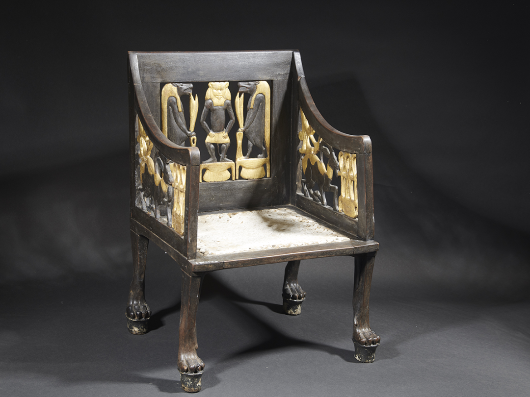 帶有貝斯神形象的椅子,木、顏料、銀,18王朝(公元前1550-1295年),埃及國家博物館