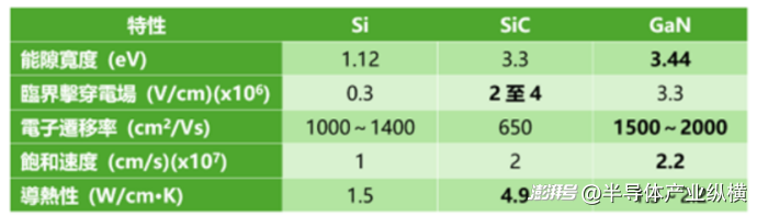 相較于傳統(tǒng)的硅基板,寬帶隙材料本質上能夠在更高的開關頻率和更高的電場下運作。當半導體受熱時,由于熱激發(fā)載流子在高溫下更為豐富而導通,其電阻往往隨之下降。更寬帶隙的半導體需要更高的溫度(更多的能量)來激發(fā)電子從價帶(valence band)跨越能隙到導帶(conduction band)。這將直接帶來更強大的功率處理能力和更高的元件效率。