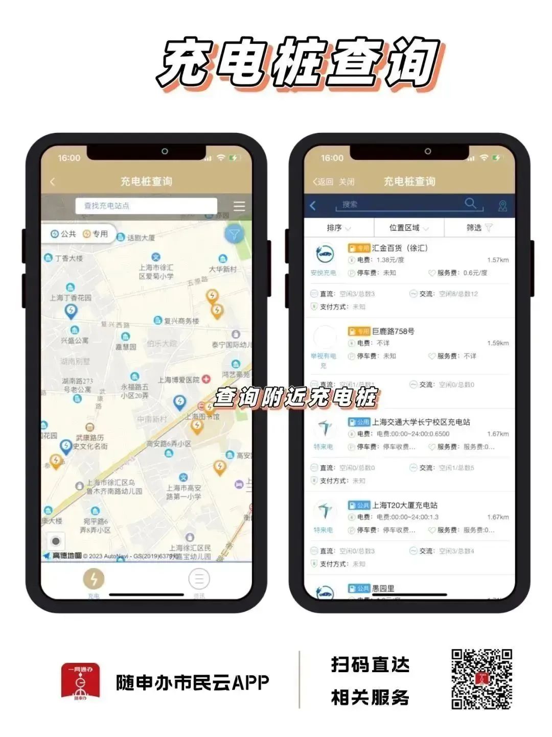 “隨申辦市民云”APP【充電樁查詢】服務(wù),可查詢附近的充電樁信息,提前規(guī)劃“補(bǔ)給”路線