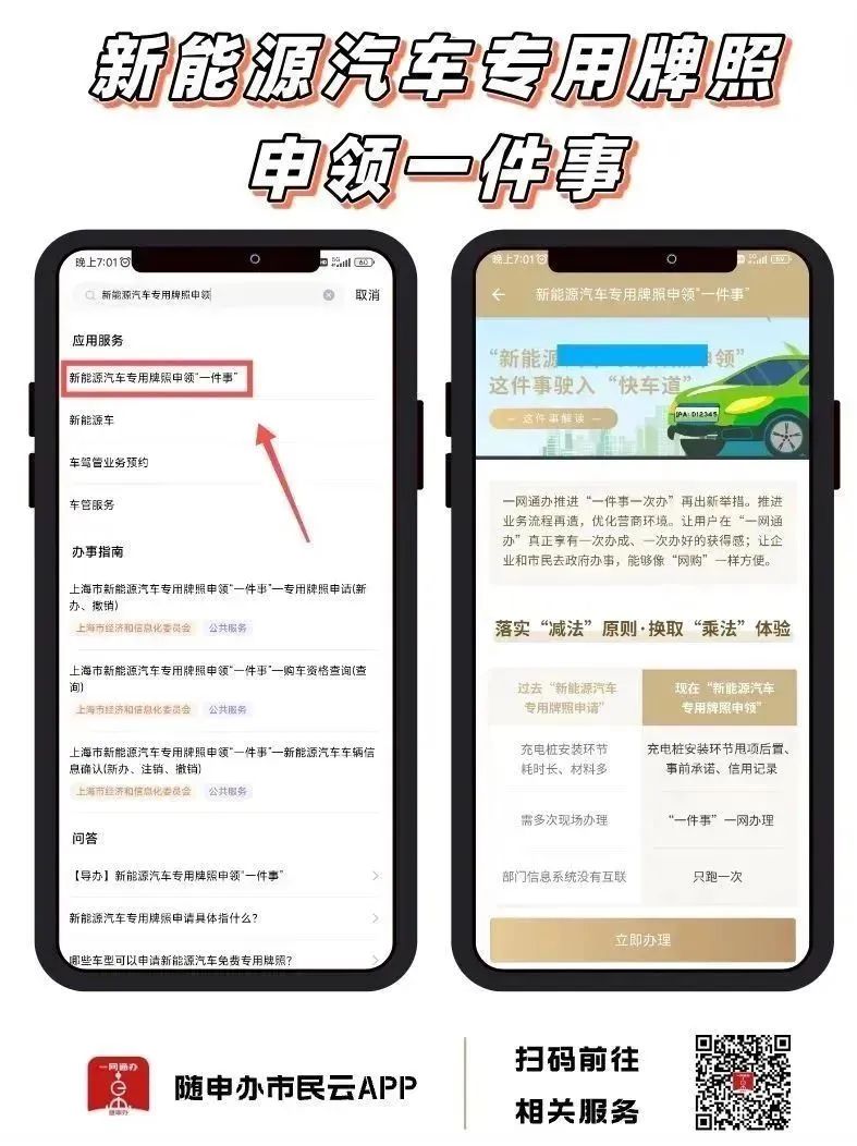 買新能源車的我們,如何快速申領(lǐng)專用牌照?在“隨申辦市民云”APP一鍵進(jìn)行線上填報,申領(lǐng)牌照,只跑一次!
