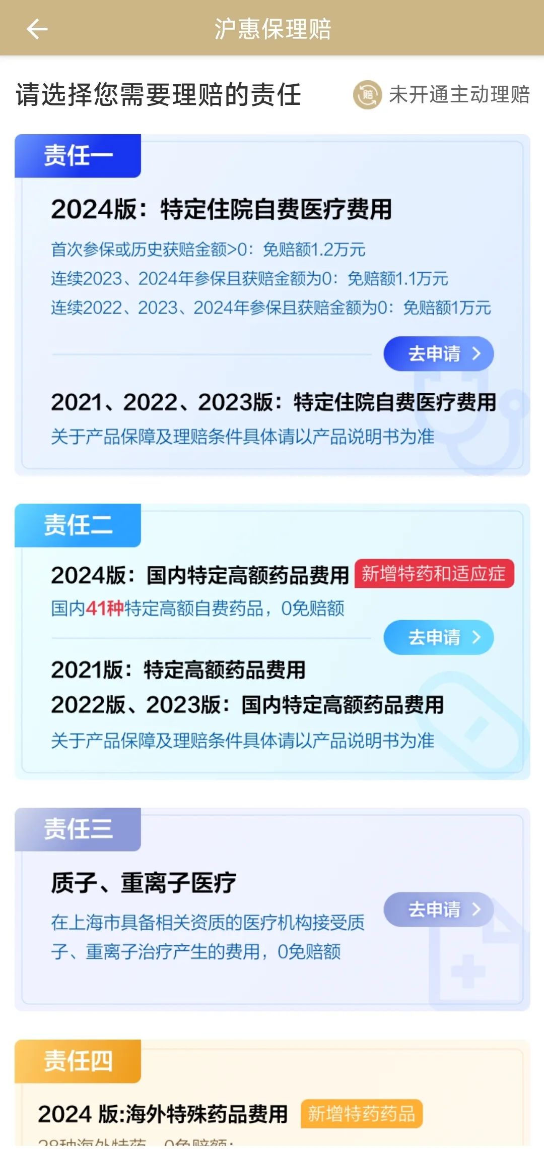 第二步:選擇對應(yīng)得理賠責(zé)任,點擊“去申請”按鈕開始申請。