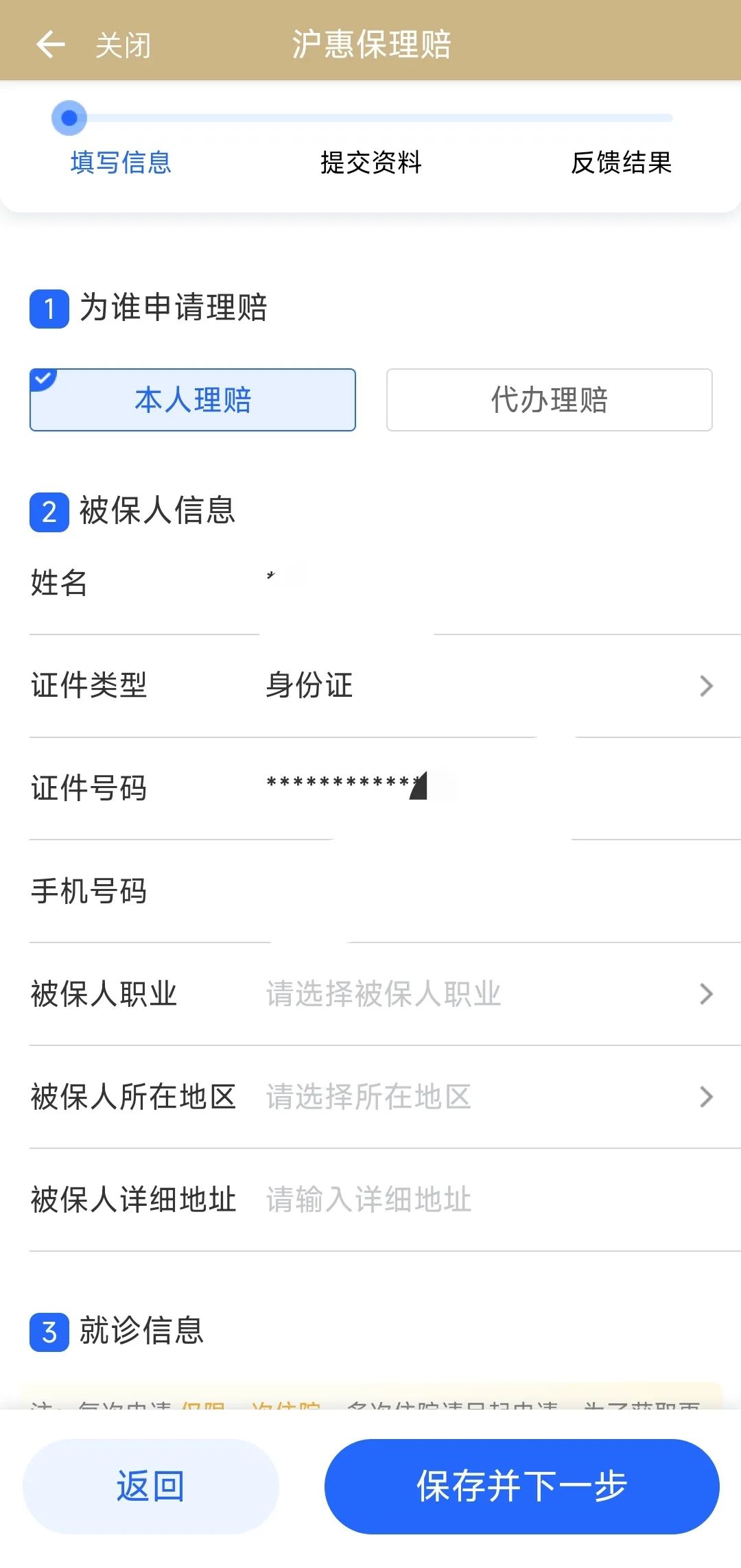 第三步:選擇“本人理賠”或“代為理賠”后輸入相關(guān)信息并提交對應(yīng)材料即可。
