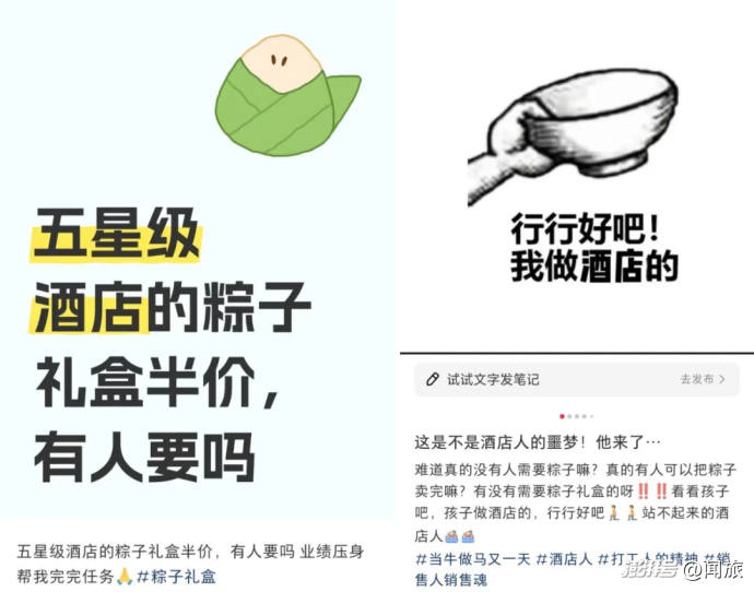 社交媒體上,賣粽子的酒店員工今年從3、4月份就開始哭爹喊娘,不知道要怎么把粽子賣出去。