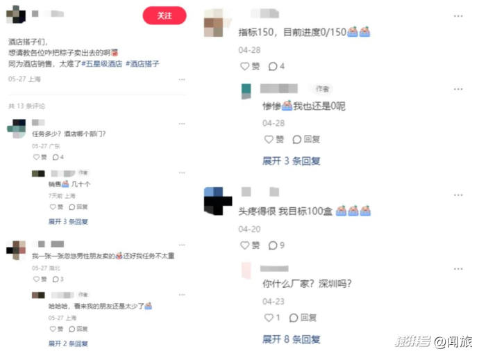 餐廳、行政、銷售、前廳、公關(guān),不管你是干嘛的,粽子任務(wù)是少不了的。動(dòng)輒60盒、80盒、1萬塊、2萬塊交易額,有的還會(huì)被PUA“完不成任務(wù)就要自掏腰包”。