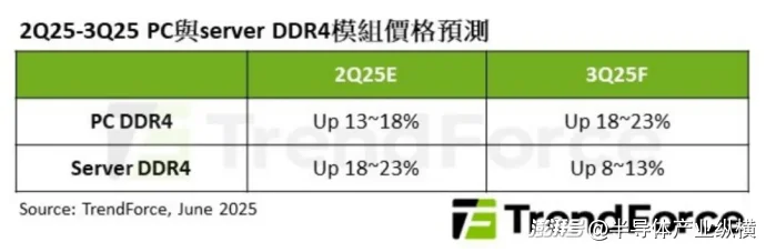 TrendForce 指出,進(jìn)入第二季后,云端服務(wù)企業(yè)(CSP)的標(biāo)準(zhǔn)服務(wù)器(general server)建置需求維持穩(wěn)健,存儲(chǔ)服務(wù)器需求在AI 服務(wù)器的配套應(yīng)用甚至上修,帶動(dòng)DDR4 存儲(chǔ)的訂單追加。同時(shí),受DRAM 主要供應(yīng)商將逐漸收斂server 和PC DDR4 產(chǎn)出,加上美國關(guān)稅導(dǎo)致買方提前備貨等因素,第二季server 與PC DDR4價(jià)格上漲,預(yù)期漲幅將分別季增18%~23% 和13%~18%。