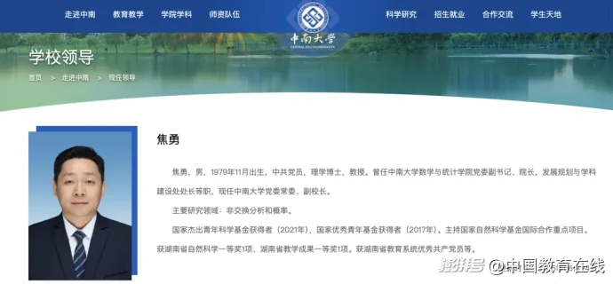 據(jù)中南大學官網(wǎng)顯示,焦勇已任中南大學副校長。