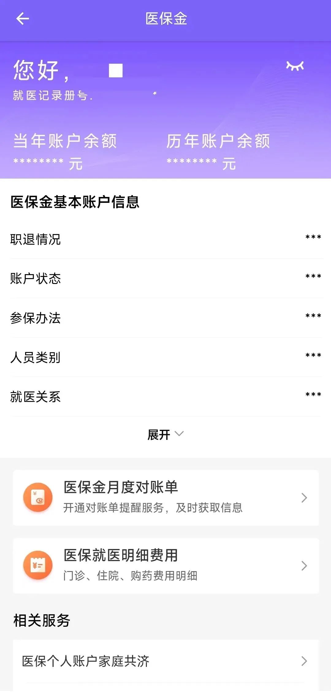 醫(yī)保金詳情:點(diǎn)擊查看詳情后,可查看當(dāng)年賬戶余額、歷年賬戶余額、基本賬戶信息等詳細(xì)內(nèi)容。