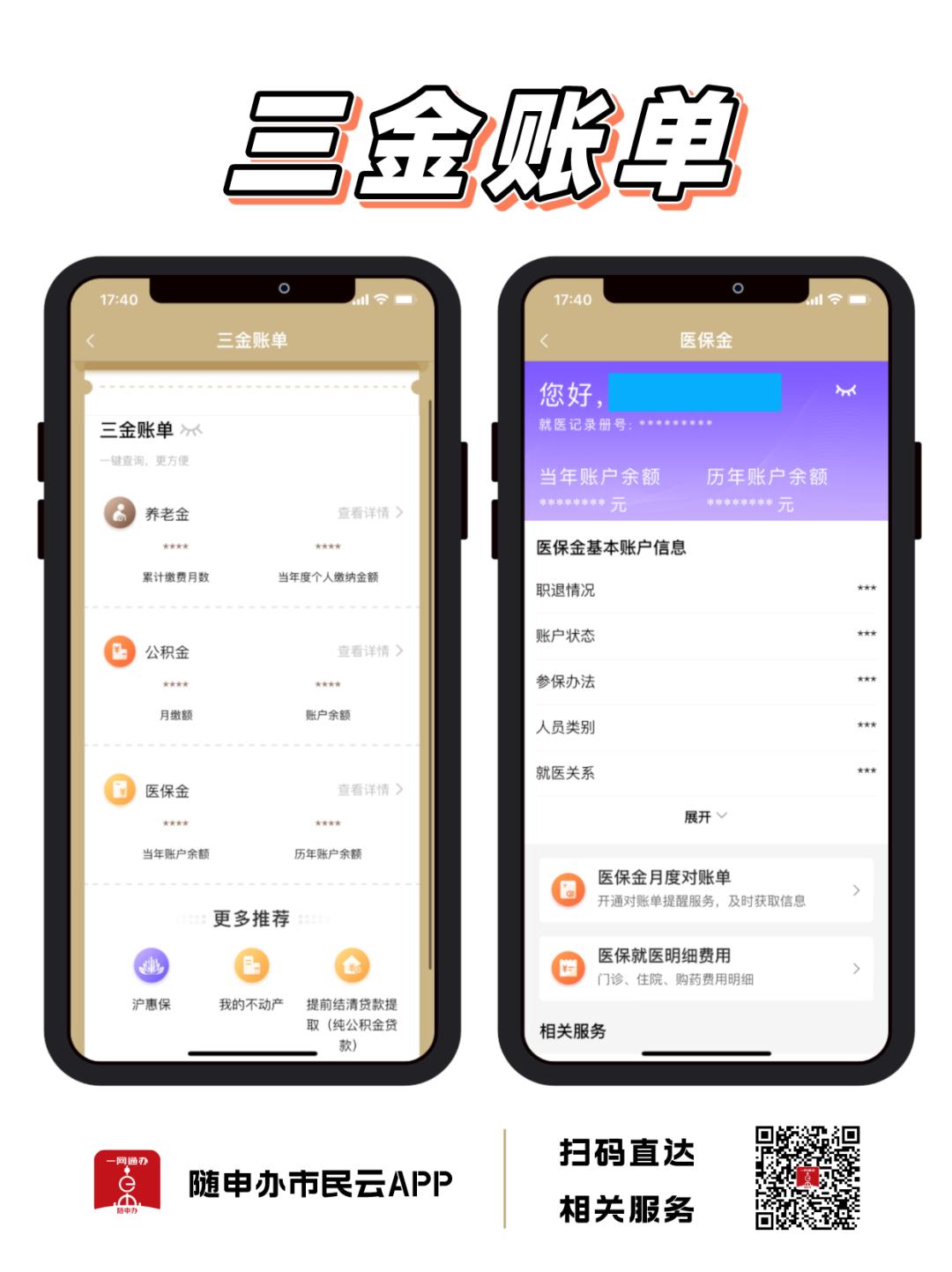 到手工資有了保障,趕快上“隨申辦市民云”APP看看你的三金賬單,可在線查看醫(yī)保金、養(yǎng)老金、公積金。
