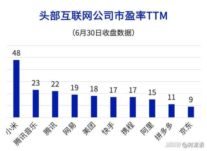 汽車業(yè)務(wù)帶來了高增長預(yù)期,所以小米享受著遠(yuǎn)超其他互聯(lián)網(wǎng)巨頭的市盈率(48倍)。