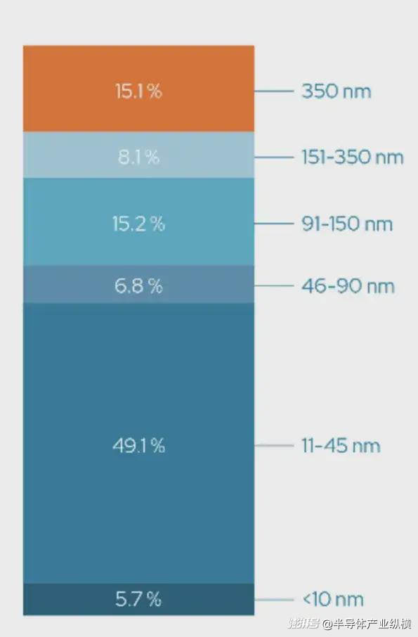 如果在決定采用 350nm 還是 180nm CMOS 技術時考慮工藝的長期可用性,則值得關注近期晶圓交付情況。2023 年第三季度,大于 90nm 的技術節(jié)點占月度晶圓產量的 38% 以上。這意味著8英寸晶圓的全球供應鏈依然強勁,確保了材料和設備的持續(xù)供應。