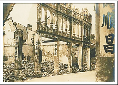 1939年4月,在日軍入侵中,瓊東縣(今瓊海市)嘉積鎮(zhèn)新民街被日軍炮火炸成廢墟。