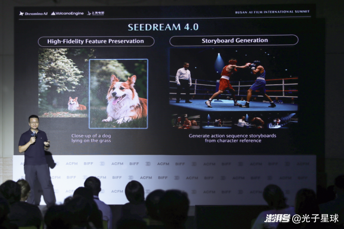 9月22日,即夢AI、火山引擎和上海電影,在釜山國際電影節(jié)InnoAsia平臺舉辦“未來影像”AI電影國際峰會,幾位入圍者被邀請到現(xiàn)場,與中國導演梁鳴、韓國導演金泰勇、制片人李少偉、攝影指導夏永康、美術(shù)指導王競等展開交流對話。