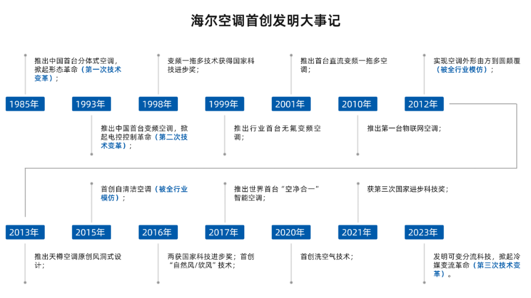 早在1985年,海爾推出中國(guó)第一臺(tái)分體式空調(diào),解決了室內(nèi)機(jī)的噪音問題;1993年產(chǎn)出中國(guó)第一臺(tái)變頻空調(diào),開啟電控控制先河;2023年,海爾空調(diào)自主研發(fā)換熱器可變分流科技,掀起冷媒變流革命。