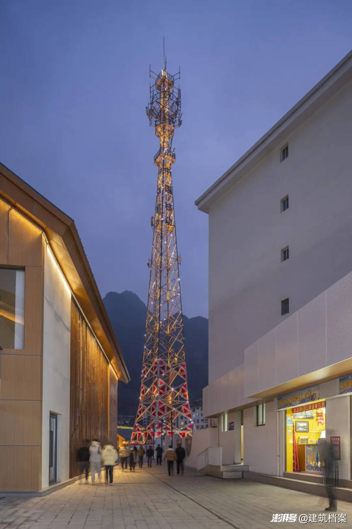 ▲ 夜晚,康縣人字橋旁的信號(hào)塔成為商業(yè)街南端的標(biāo)志物 ? 金偉琦