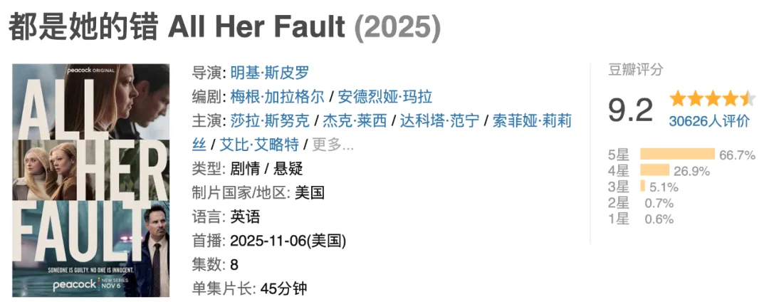 《都是她的錯》,開分9.0,后來迅速漲到9.2。
