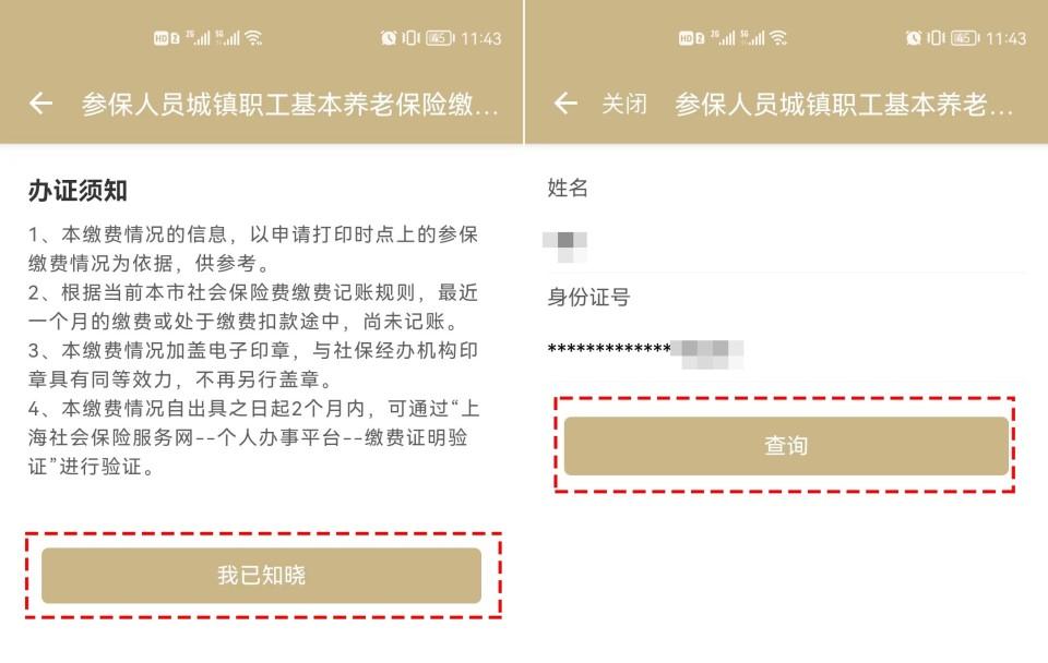 2、點(diǎn)擊“我已知曉”→確認(rèn)個人信息,點(diǎn)擊“查詢”;