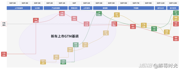 在制定節(jié)奏的過程中,要考慮到外部情況的變化,比如某個(gè)重量級產(chǎn)品搶先發(fā)布,或者是否要借助車展來完成某一個(gè)節(jié)點(diǎn)的營銷動(dòng)作,甚至是當(dāng)市場遇冷或者大規(guī)模價(jià)格戰(zhàn)的時(shí)候,是否考慮壓后產(chǎn)品發(fā)布的時(shí)間等等。同時(shí)還要結(jié)合市場的淡旺季情況,比如一月二月是新能源普遍的淡季,六月七月是夏季淡季,九十月是金秋旺季,十二月是銷量沖刺等,GTM要結(jié)合歷史情況和新車銷量目標(biāo),來進(jìn)行節(jié)奏的規(guī)劃和調(diào)整。