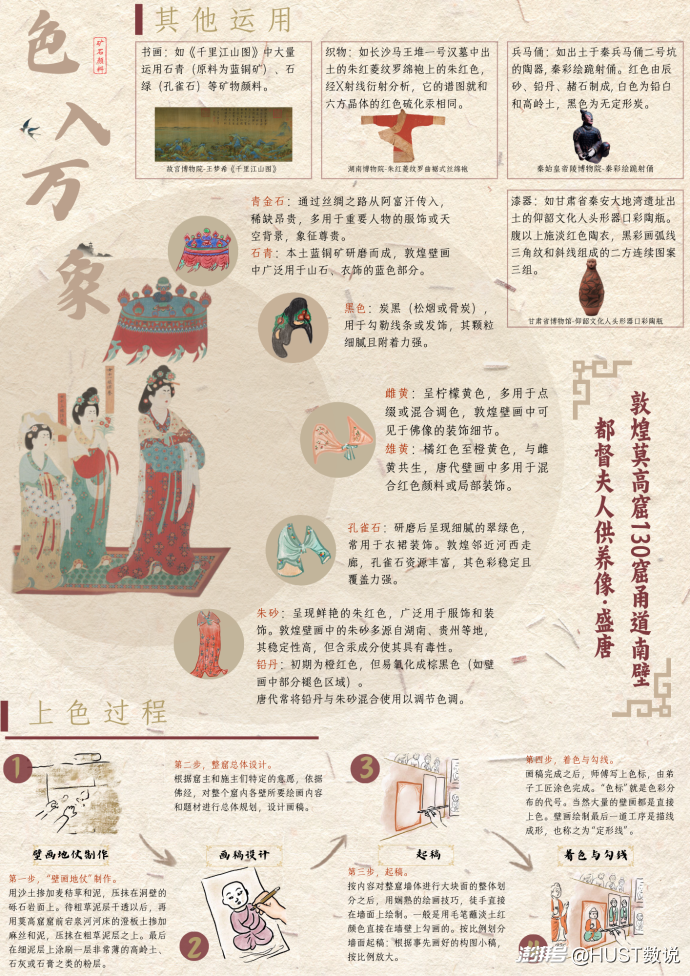 作為中國傳統(tǒng)繪畫與壁畫中的重要材料,礦物顏料在敦煌壁畫中得到了極具代表性的運用。從底層處理到色彩疊加,從大面積的色塊鋪陳到細節(jié)之處的精心勾勒,礦物顏料賦予壁畫以千年不變的絢麗與莊嚴(yán),也成為研究中國古代色彩美學(xué)與技藝傳承的重要窗口。