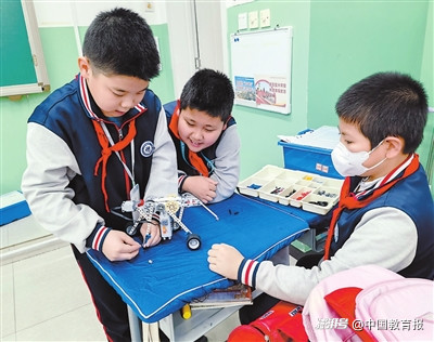 天津市武清區(qū)楊村第十六小學課后服務學生正在組裝機器人。學校供圖