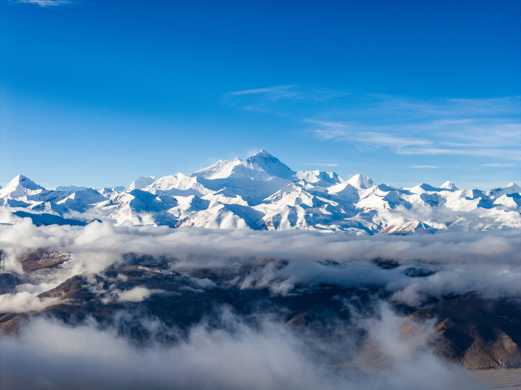 喜馬拉雅山脈中的珠穆朗瑪峰。視覺中國 圖