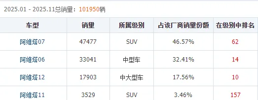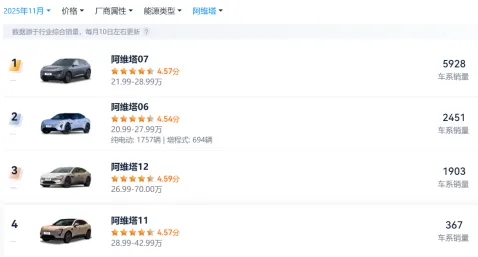阿維塔2025年11月各車(chē)型銷(xiāo)量情況