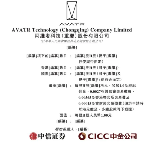 阿維塔向港交所遞交上市申請(qǐng)