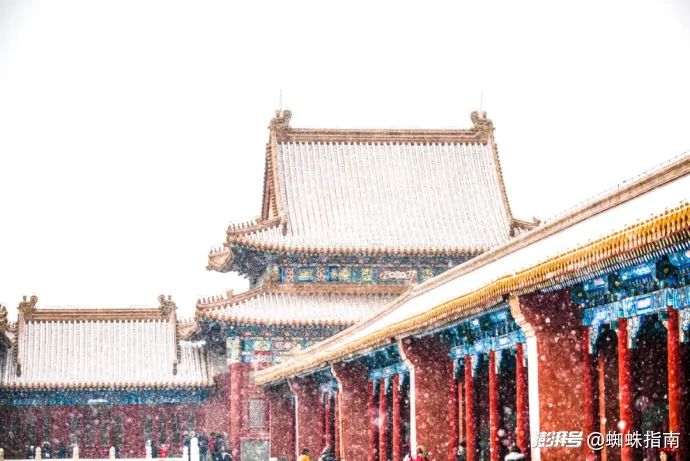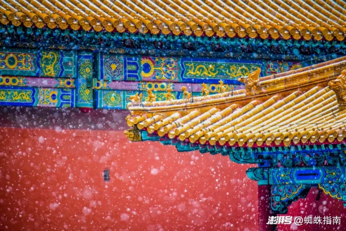 雪中的故宮,好像卸下了它的威嚴(yán),淡淡地融進(jìn)了一片潔白之中。片片雪花紛紛揚(yáng)揚(yáng)從空中落下,與紅墻黃瓦交相輝映,每一處的風(fēng)景都美如畫(huà)卷。