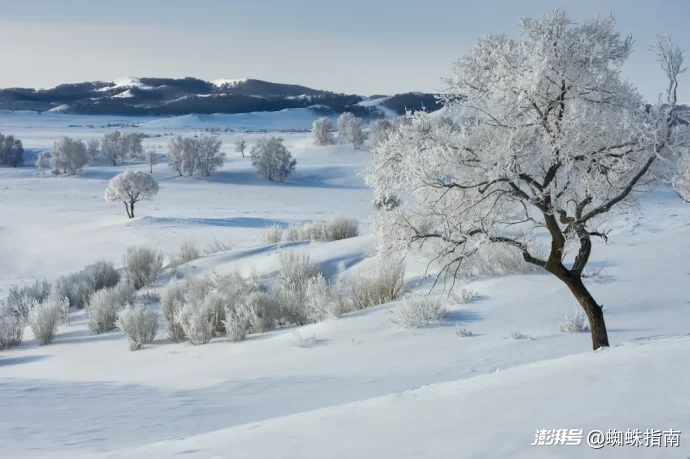 一望無(wú)際的草原被白雪覆蓋,一片白茫茫,看到冬天最純凈的景色,仿佛身處仙境一般,而且冬天最容易出大片。