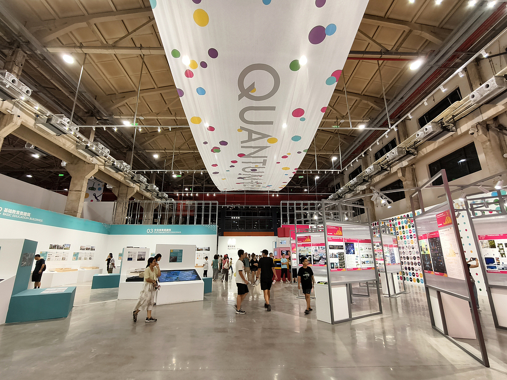 2025年10月6日,觀眾在2025上海城市空間藝術(shù)季主展區(qū)楊浦區(qū)復(fù)興島船臺公園片區(qū)A館“量子城市 復(fù)興未來”主題展參觀。 視覺中國 資料圖