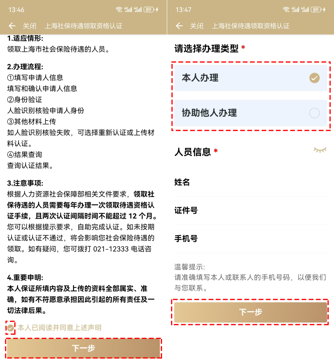 閱讀辦理須知,點(diǎn)擊“下一步”→選擇辦理類型“本人辦理”或“協(xié)助他人辦理”,確認(rèn)正確后點(diǎn)擊“下一步”。