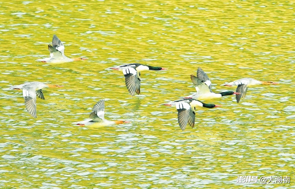 12月19日,湖南省岳陽市平江縣甕江鎮(zhèn),國家一級重點保護野生動物中華秋沙鴨在汨羅江嬉戲捕食。目前,汨羅江平江段今年已觀測到49只中華秋沙鴨。作為國家一級保護動物,中華秋沙鴨羽冠長而明顯,成雙冠狀,嘴長而窄,呈紅色。越冬期常集小群棲息于山間河流、水庫湖泊中,主食魚類、石蛾科昆蟲等。徐行 攝