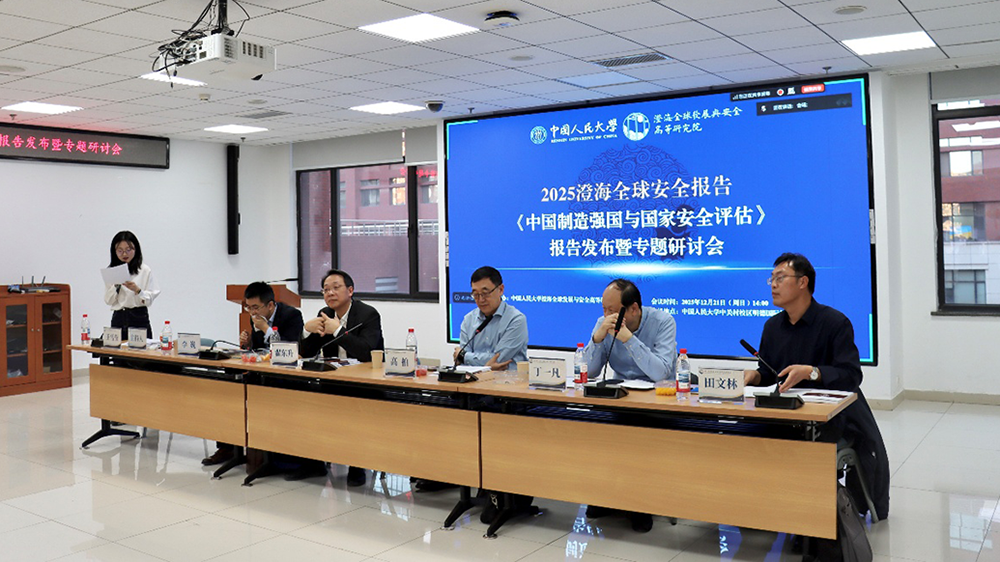 2025年12月21日下午,中國(guó)人民大學(xué)澄海全球發(fā)展與安全高等研究院舉辦“2025澄海全球安全報(bào)告《中國(guó)制造強(qiáng)國(guó)與國(guó)家安全評(píng)估》報(bào)告發(fā)布暨專題研討會(huì)”(以下簡(jiǎn)稱發(fā)布會(huì))。發(fā)布會(huì)聚焦“中國(guó)制造強(qiáng)國(guó)戰(zhàn)略”實(shí)施十年來的成效與國(guó)家安全效應(yīng),來自學(xué)界、政策界的多位專家學(xué)者參與研討。