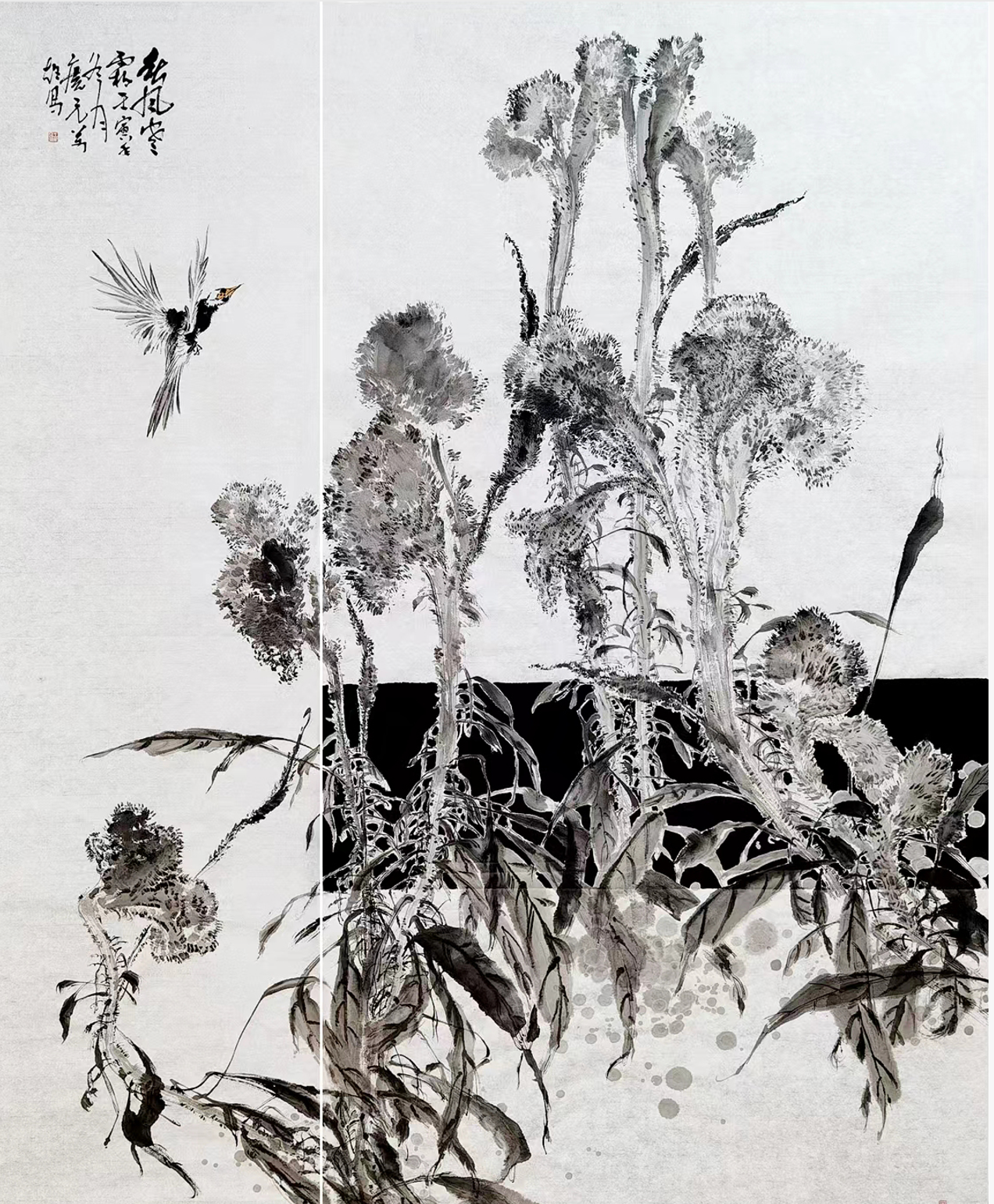 畫家王萬(wàn)超筆下花鳥既具傳統(tǒng)文人畫的雅韻,又融入當(dāng)代青年的蓬勃朝氣。借濃淡干濕的墨色變化,將自然生機(jī)與個(gè)人心象融合。
