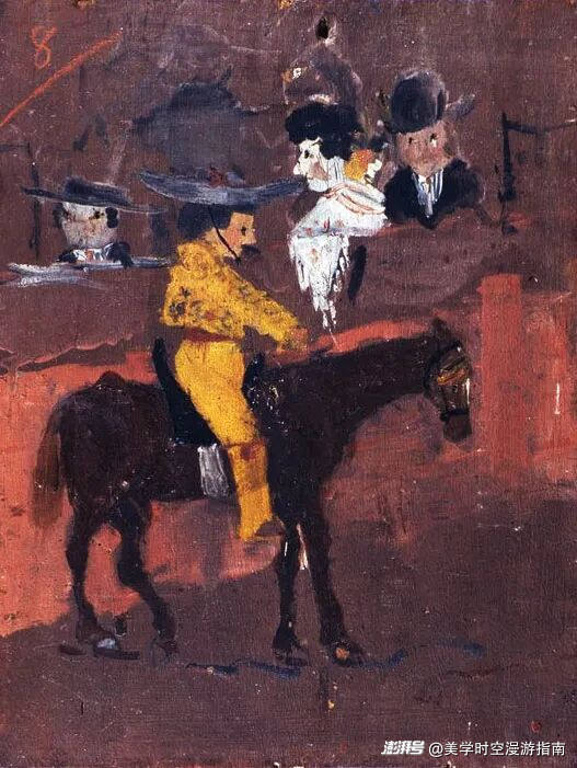 上圖為畢加索八歲時創(chuàng)作的一幅小型油畫《斗牛士》(Picador),這被認為是他的早期作品之一。是在他父親指導下完成的作品。這幅畫的靈感來源于他第一次觀看斗牛比賽。斗牛一直是畢加索終生摯愛的藝術(shù)形式之一。
