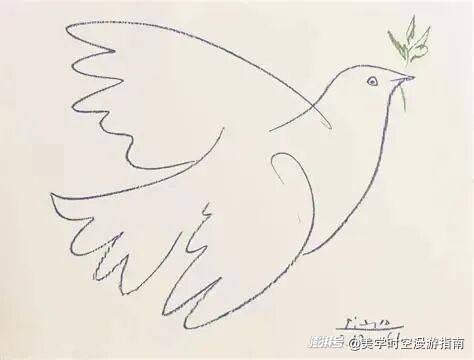 上面這一幅,讓人想起畢加索在1962年畫出的最為世人所熟知的和平鴿(下圖)。與他9歲時畫出的這幅《鴿子》相比,時光已經(jīng)過了去了七十二年,那一年古巴危機,他已經(jīng)81歲了。