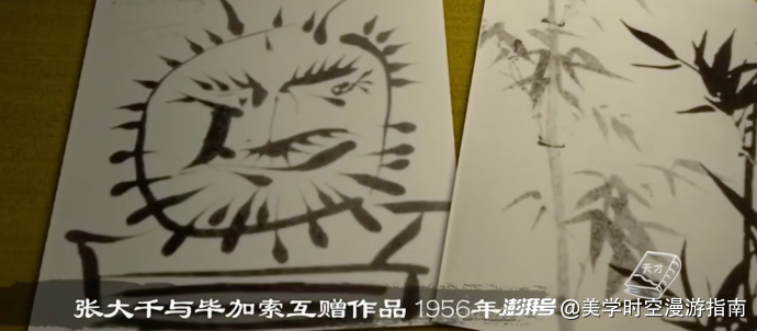 4.1956年7月27日,57歲的畢加索與65歲的張大千在法國南部蔚藍海岸的加州別墅見了一面。畢加索與張大千,兩人互贈作品,他很喜歡齊白石的畫,并收藏過四幅齊白石的水墨。和馬蒂斯第一次會面,畢加索也在跟大師分享齊白石。