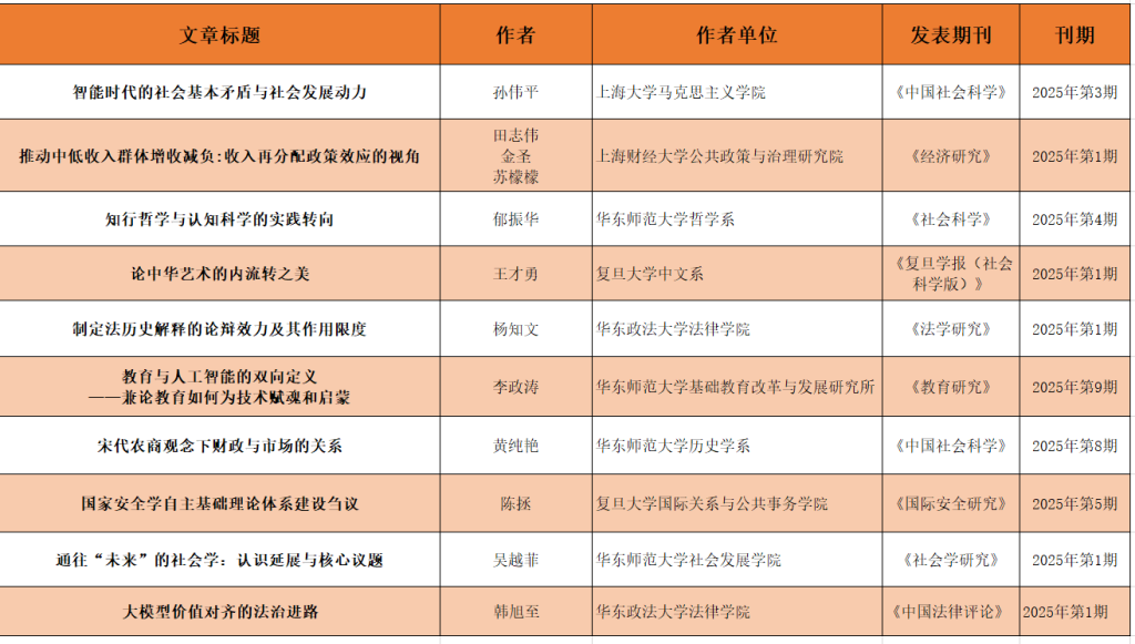 表1 上海社聯(lián)2025年度論文(排名不分先后)