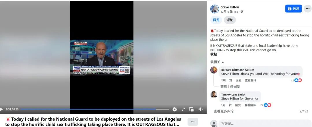 對(duì)網(wǎng)傳報(bào)道圖片在谷歌進(jìn)行反搜,結(jié)果顯示,這個(gè)畫(huà)面截取自美國(guó)加州州長(zhǎng)候選人Steve Hilton在??怂剐侣劷邮艿碾娨暡稍L。