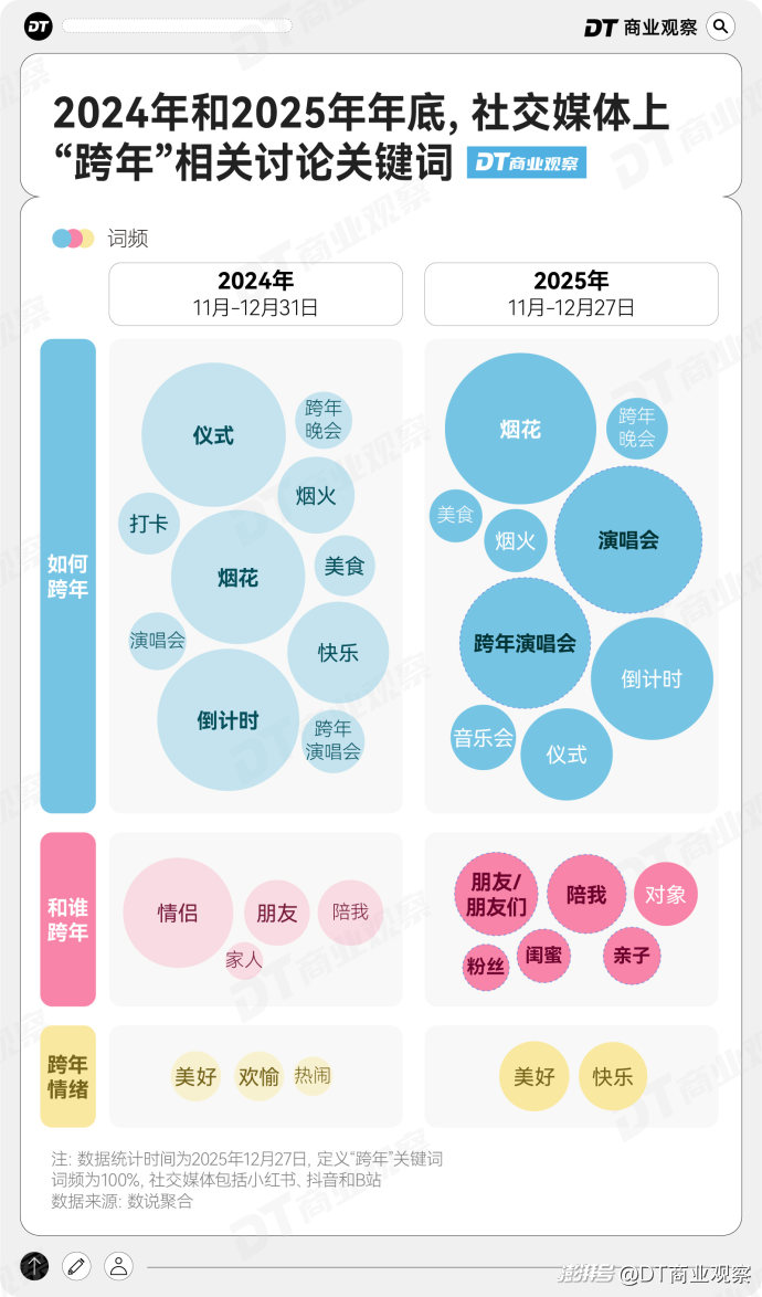 社交媒體的討論,可以在一定程度上反映年輕人跨年方式的變化。