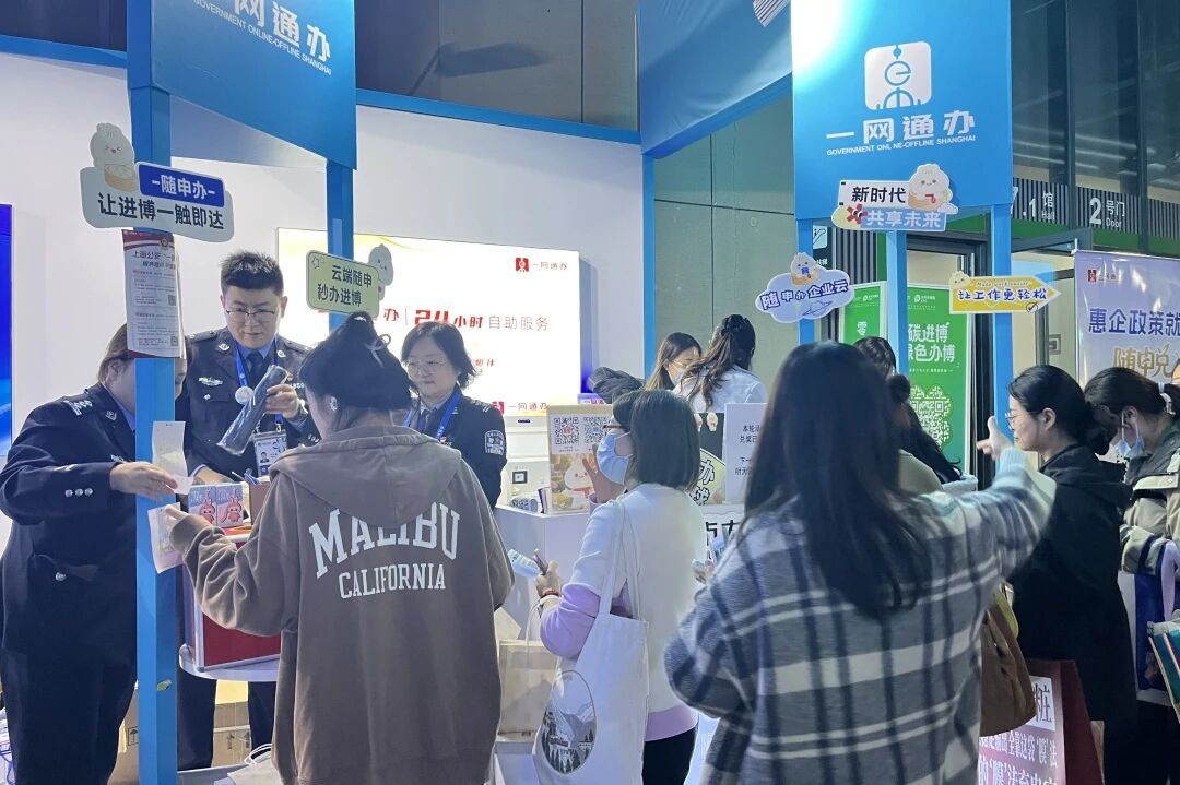 在展會(huì)現(xiàn)場(chǎng),市民信箱設(shè)計(jì)的“隨申辦·進(jìn)博”主題海報(bào)、易拉寶、“隨申辦·進(jìn)博”徽章、以及融合上海地標(biāo)建筑的套色印章,都吸引了大量中外參展人員互動(dòng)打卡。通過(guò)亮眼的禮品設(shè)計(jì)和現(xiàn)場(chǎng)展位提供的免費(fèi)政策咨詢服務(wù),向全球展客商展示上海數(shù)字政府建設(shè)成果。