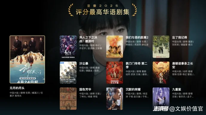 如果我們同時結(jié)合豆瓣年度劇集榜單,也可以看出平臺的精品化策略似乎并未奏效。今年,共有6部內(nèi)地劇集豆瓣評分破8分,且其中僅有《唐朝詭事錄之長安》熱播期集均破3000萬,而去年《繁花》《唐朝詭事錄之西行》《小巷人家》《邊水往事》等都實現(xiàn)了熱度口碑雙豐收,或許說明如今口碑已經(jīng)很難轉(zhuǎn)化為熱度。